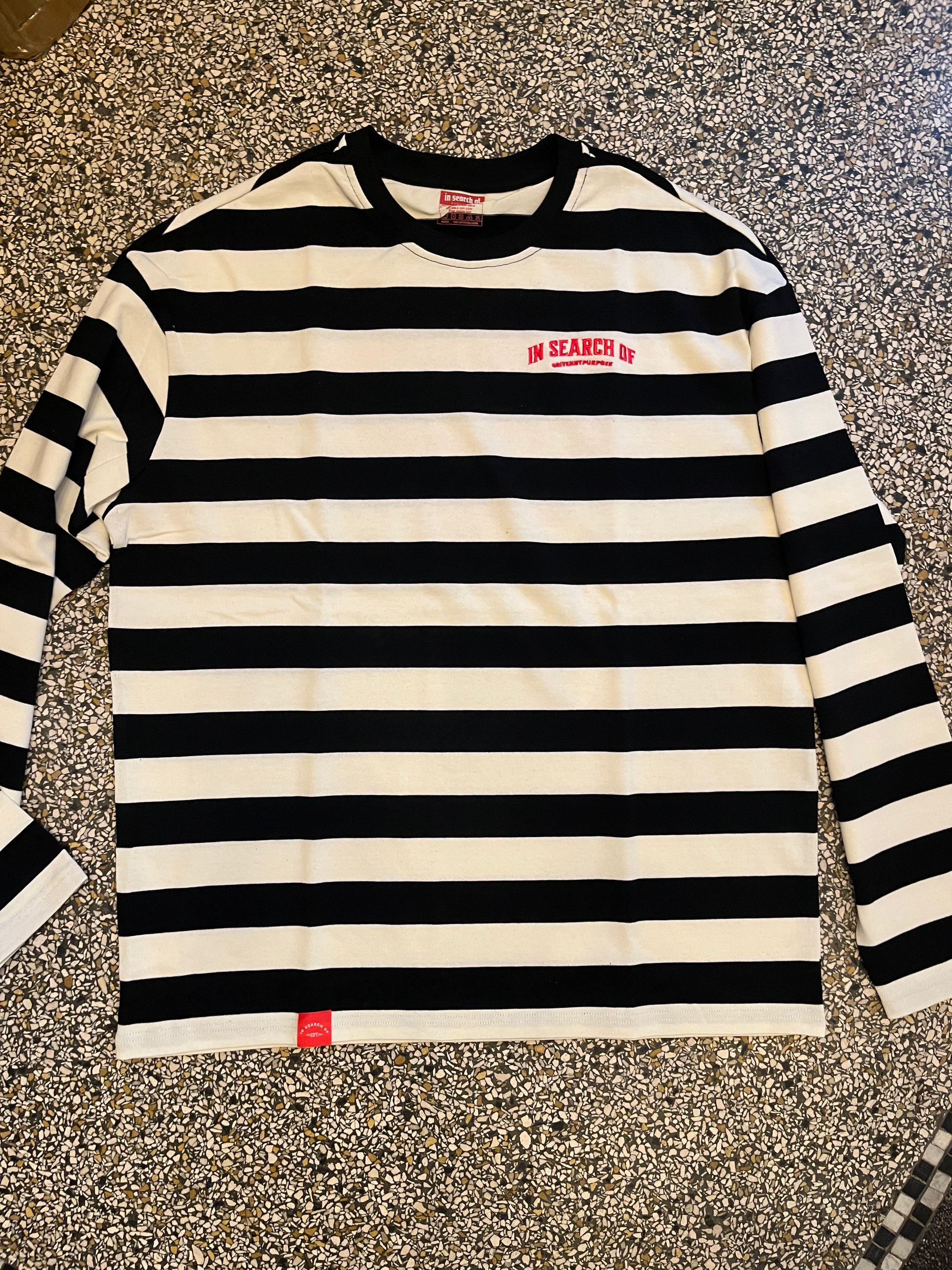 Classic black and white stripes meet contemporary edge in this heavyweight cotton longsleeve. The embroidered logo and striking red rose on the back deliver instant visual impact, while the premium fabric ensures all-day comfort and durability. Perfect for those who refuse to compromise between style and wearability—this piece effortlessly transitions from casual outings to statement-making moments.